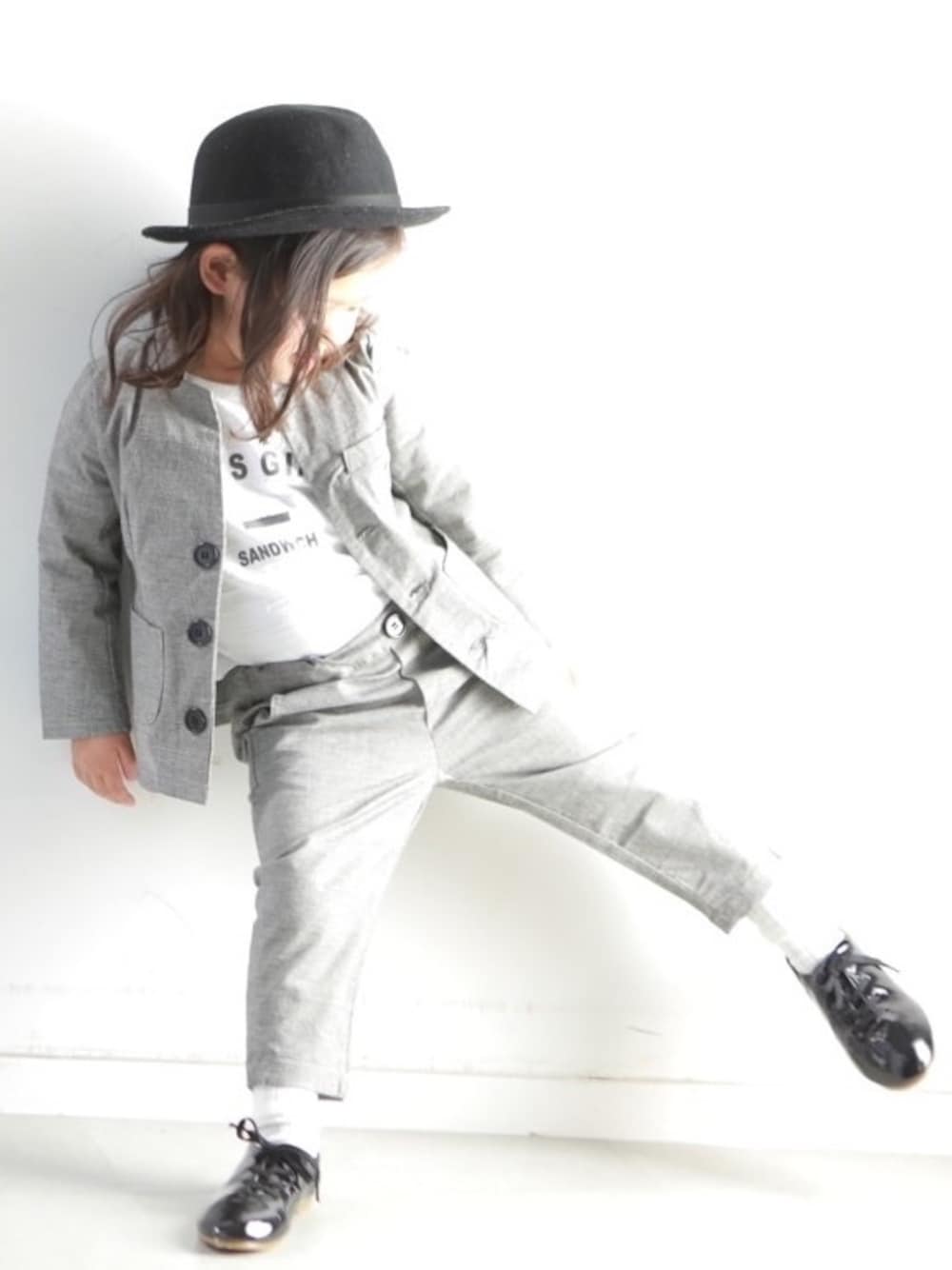 グレンチェックのモードスーツ ユニセックスだけど、あえて女の子が可愛いかな。 ソックスもポイントです^_^