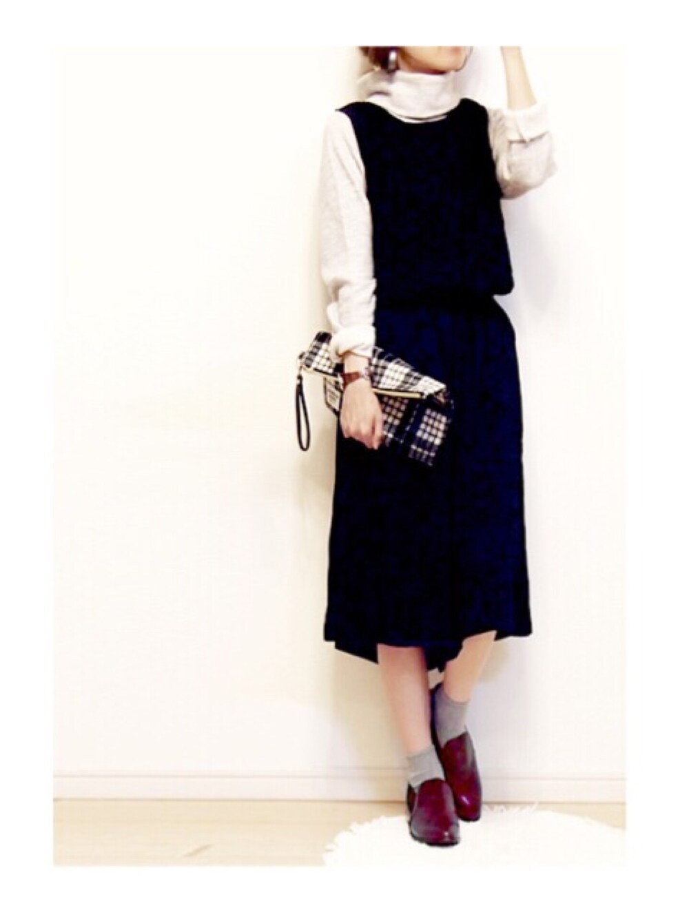 ガウチョは秋も冬もまだまだ使えそうー♪ 大きめのタートルが好き。 tops ショート丈ビッグタートルネックニットソー all in one ガウチョオールインワン
