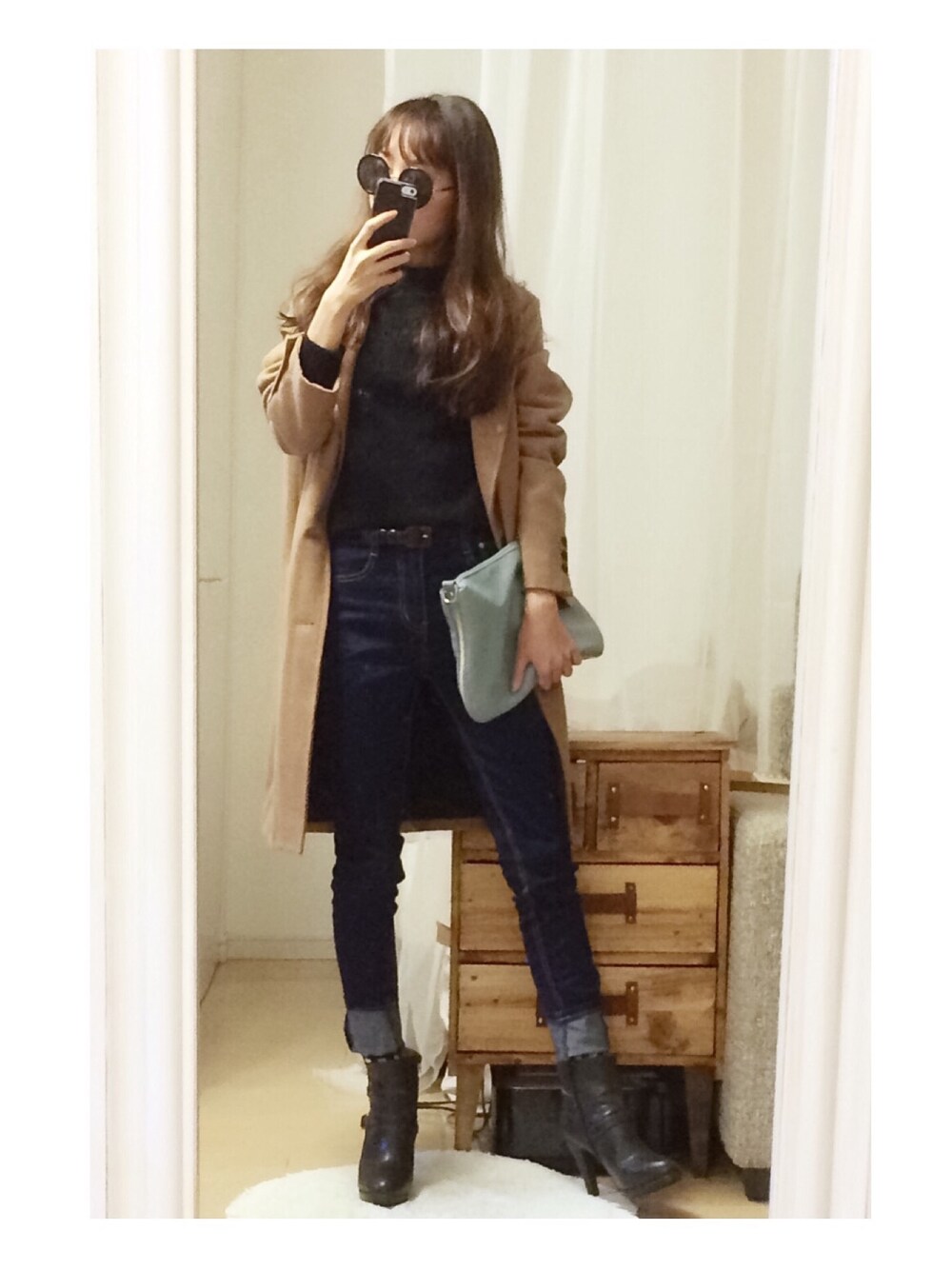 最近携帯がおかしいー😭💦 画質が悪くなるー(T_T) 見にくくてごめんなさい(ーー;) チェスター着回しです💕 今日はカジュアルめに😆✨ GUハイネックニットにスキニーにお気に入りブーツ😍 インスタグラム _roomoon_