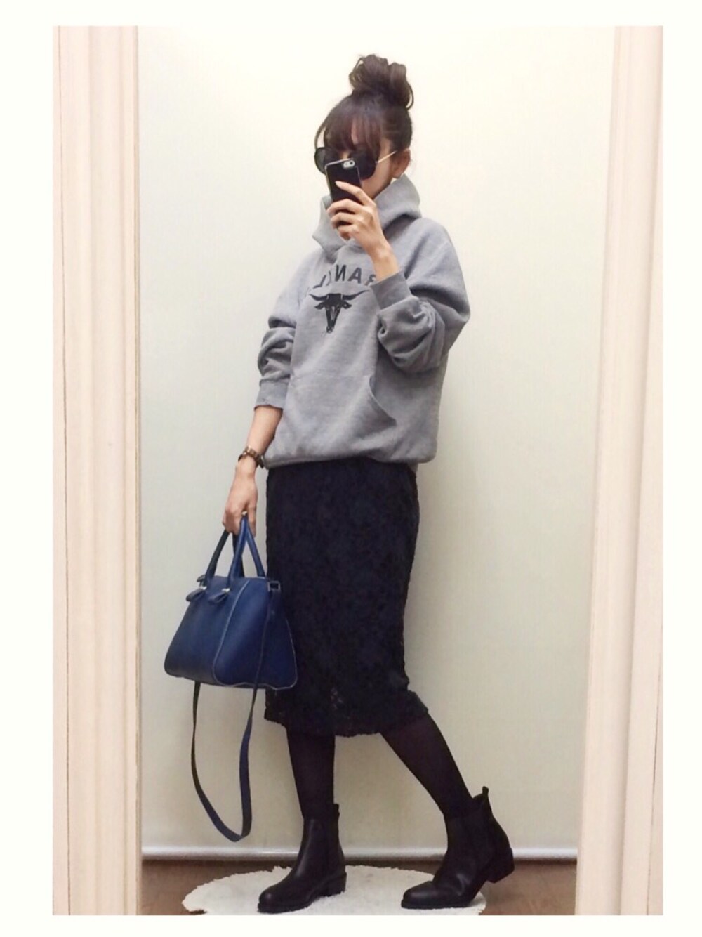 気分で選んでいるので統一感のないコーデお許しください(_ _).。o○ レーススカートが主役なのに全然見えないし、パーカーに完全に負けてる😂 でもmyshopでは人気です💗 春らしいコーデに合わせやすい💕 instagram _roomoon_