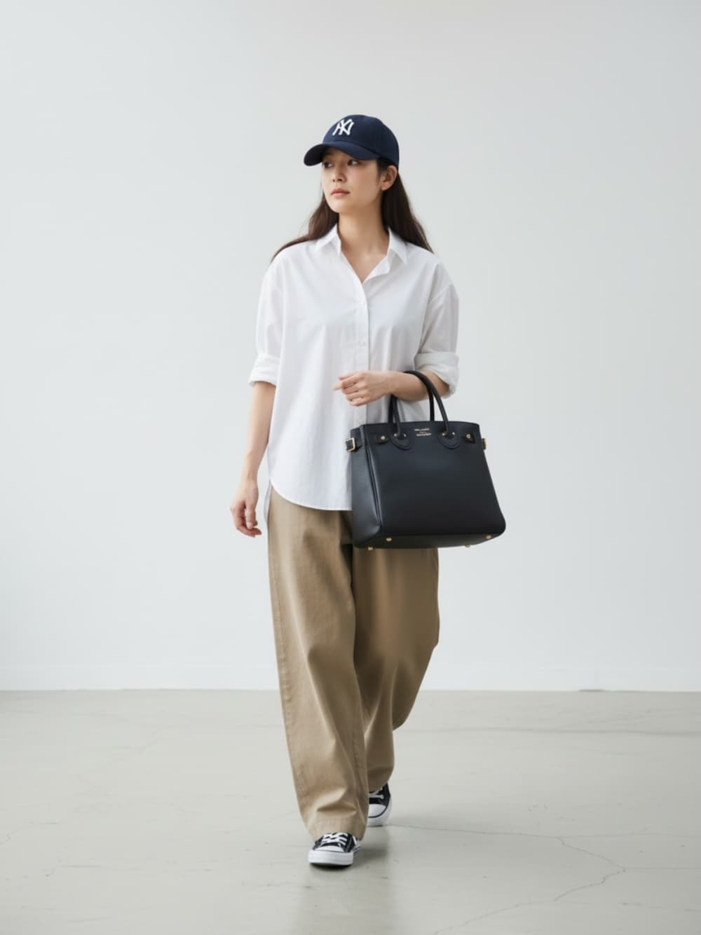 ai(ROOPTOKYO)のトートバッグ「YOUNG & OLSEN/ヤングアンドオルセン EMBOSSED LEATHER BELTED TOTE M カウレザー トートバッグ 2026年春夏」を使ったコーディネート