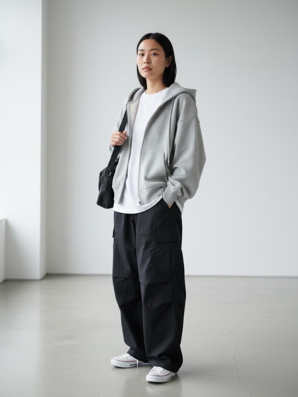 ai(ROOPTOKYO)のTシャツ/カットソー「【ROOPTOKYO】GILDAN 6oz クルーネック 袖リブ ロングスリーブTee /ロンT 無地カットソー オーバーサイズ 2026年春夏」を使ったコーディネート