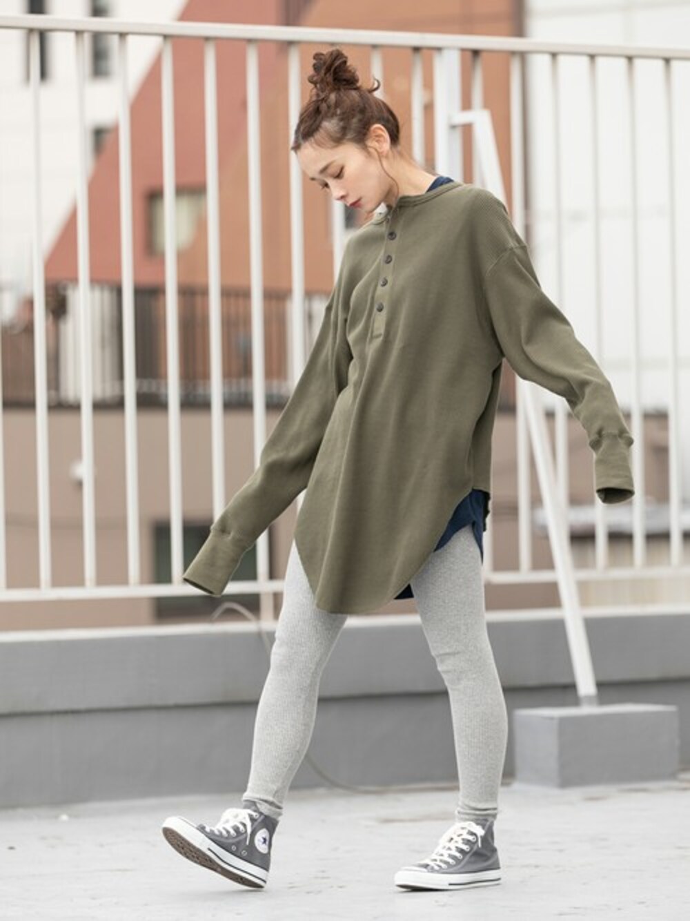 Rooptokyo(ROOPTOKYO)のTシャツ/カットソー「ワッフル バックヘンリーネック プルオーバー 2WAY カットソー」を使ったコーディネート