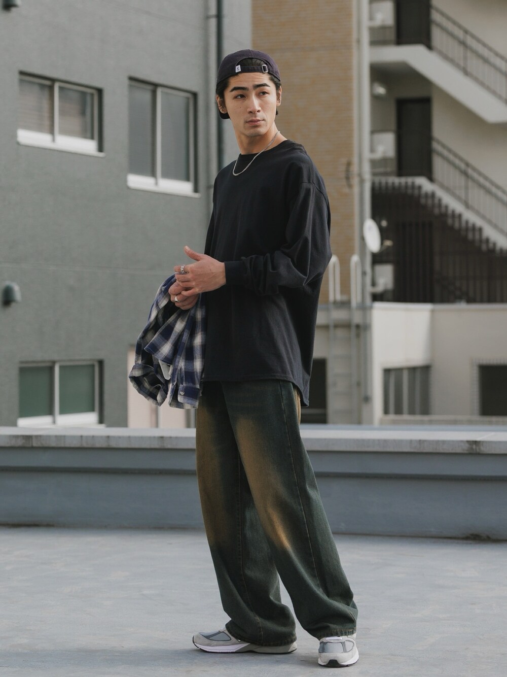 Rooptokyo(ROOPTOKYO)のTシャツ/カットソー「【ROOPTOKYO】GILDAN 6oz クルーネック 袖リブ ロングスリーブTee /ロンT 無地カットソー オーバーサイズ 2026年春夏」を使ったコーディネート