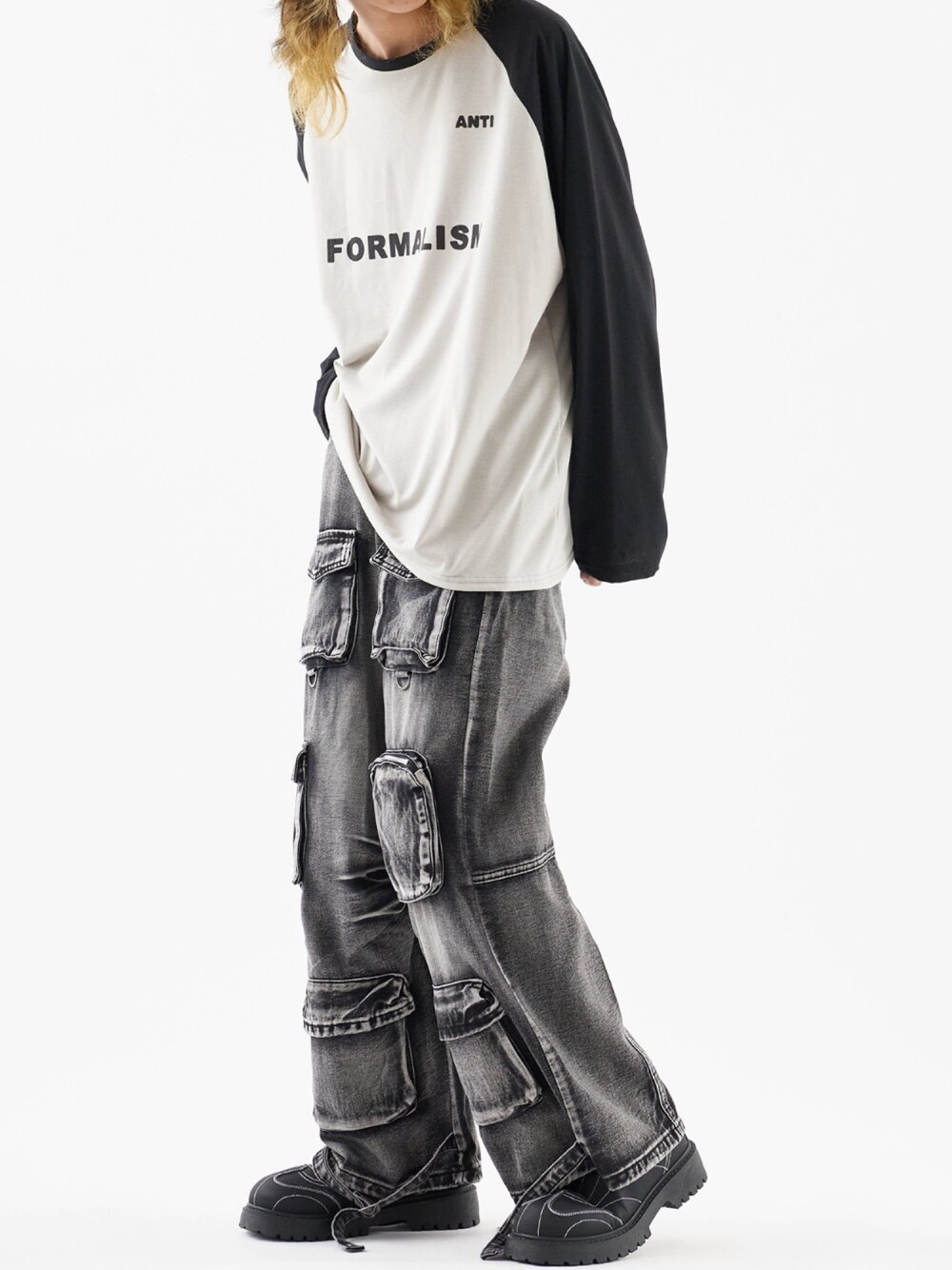 miki(ROOPTOKYO)のデニムパンツ「Vintage design cargo denim pants/ヴィンテージデザイン カーゴデニムパンツ【TV ぽかぽかOCTPATH様 着用】」を使ったコーディネート