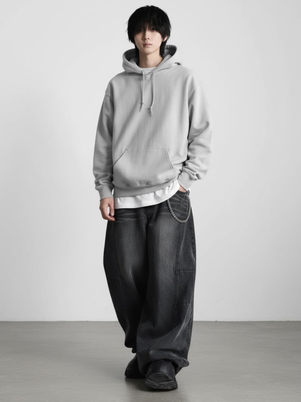 身幅・肩幅に十分なゆとりを持った ビッグシルエットデザインのプルオーバーパーカー