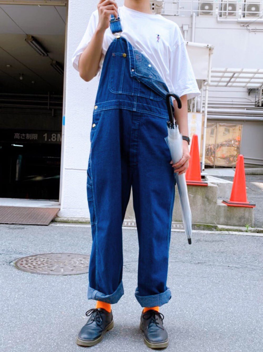 オーバーオールです😆前から1番好きなんですよね👏 雨が降るかな〜って思って傘持ってたのですがめちゃめちゃ晴れでした…🥵 白ティーはrageblueさんのでワンポイントがとても可愛く、オーバーオールはアメ村で昔買いました。 オーバーオールは片方だけ肩外すと更に可愛くなると思います😉