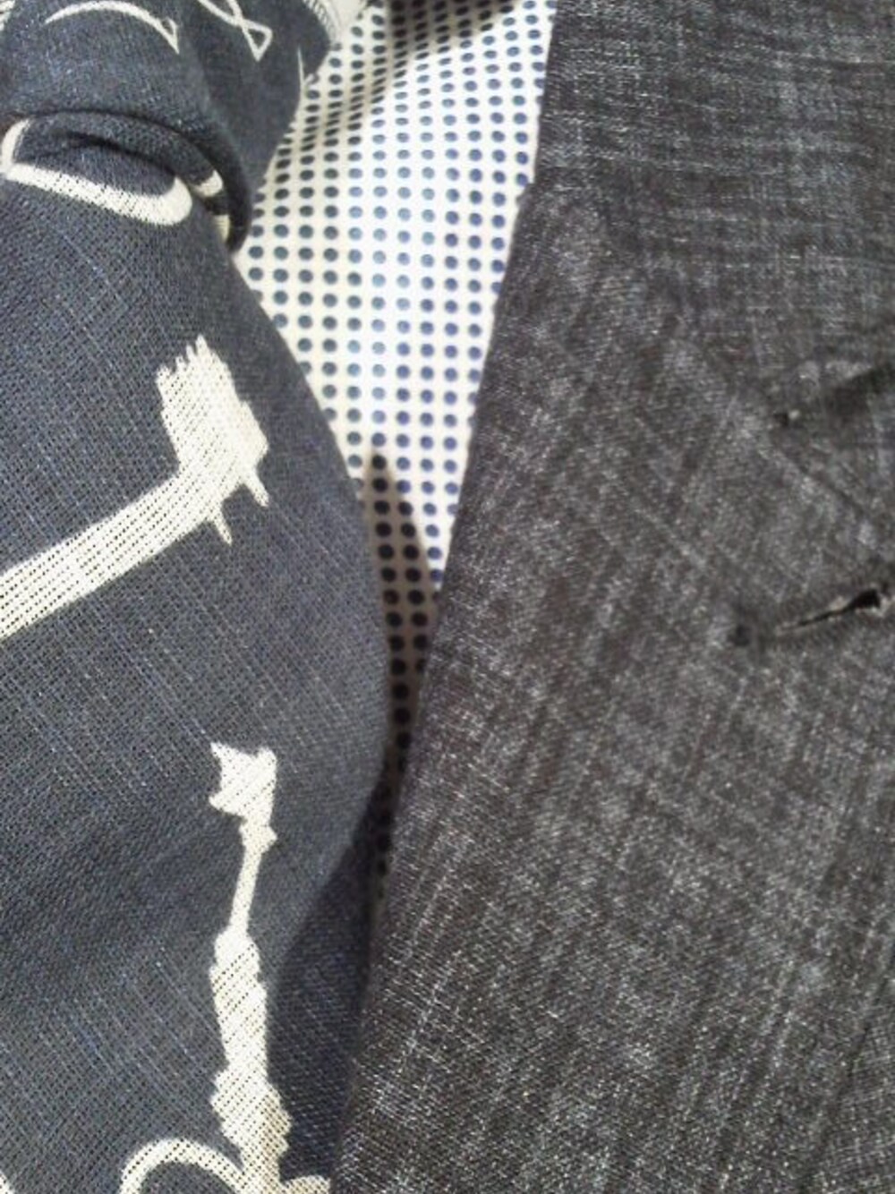CPカンパニーのシャツジャケットにギローバーの見にドットプリントのシャツ。衿型はラウンド。ネクタイはROOYTWEBオリジナル。いつもならTシャツを着ますが敢えてネクタイなどしてみました。