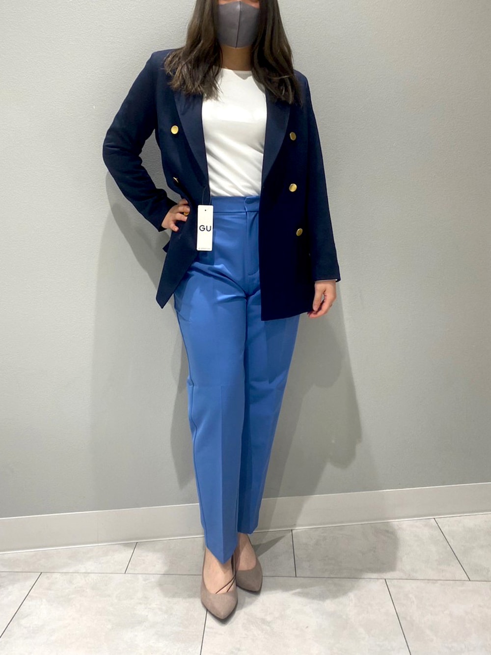 かっちりしたい時はネイビーのジャケット 鮮やかなブルーで垢抜け パンプスをベージュにすることでやわらかさを演出 仕事ができる大人女子にオススメのコーデ