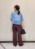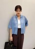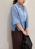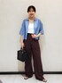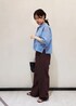 ニットポロシャツを着用した大人カジュアルコーデ♪ メンズっぽくなりやすいポロシャツも シアー感のあるものを選ぶとかっこよくなりすぎず 着ていただけます◎ ブルー×ブラウンの配色で一気にこなれた雰囲気に。 ※ネックレス、イヤリング、バングル、サンダルはスタッフ私物です。