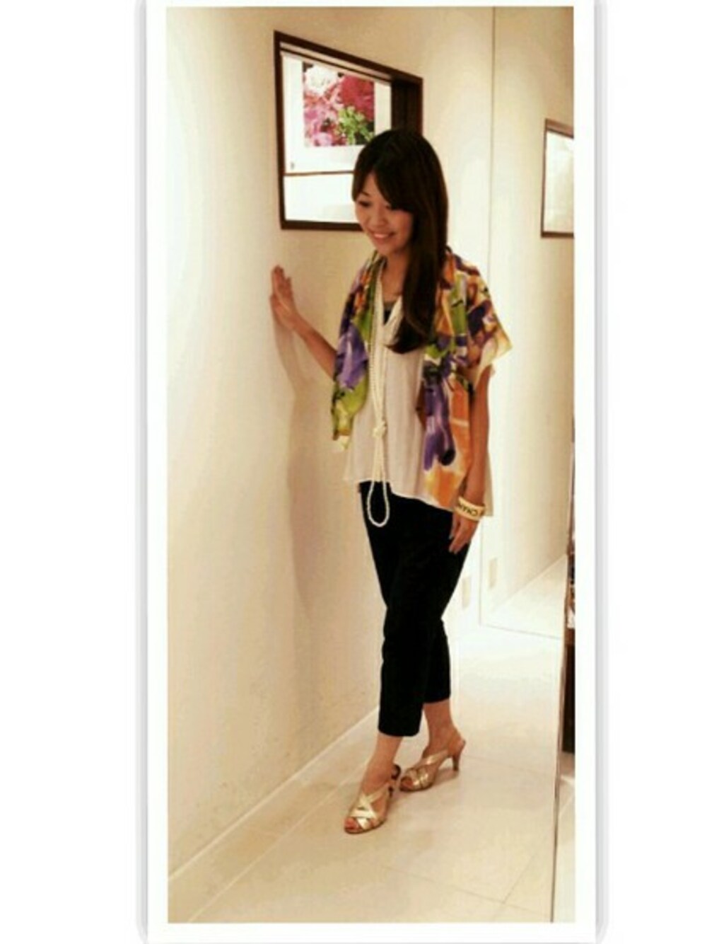 ブラウスはAラインでパンツとの相性はとっても良いです◎ ウエストインしてスカートと合わせてもすっきりします! シンプルなトップスとパンツにカルフルなスカーフで差し色をいれて夏らしくしました!