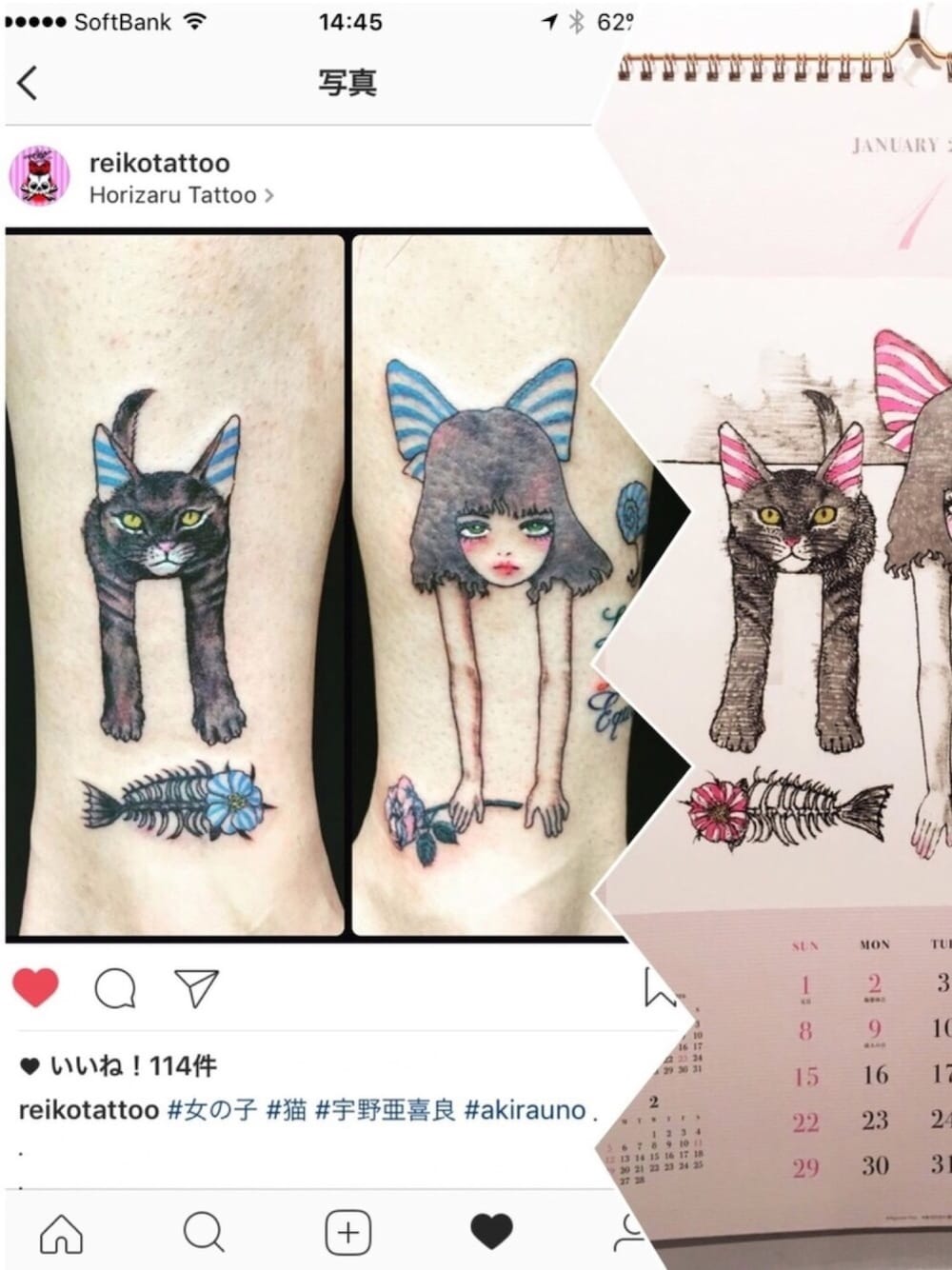 mi boy f tattoos aqirax!!!!!!!!!!!!!!!!!!!!!!!!!!!!!great shitshit💨👩🏻🐹 宇野亜喜良 カレンダー2017「ネコたち少女たち 」