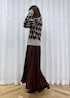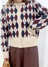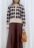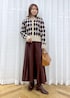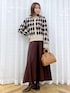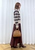 秋冬らしいアーガイル柄のカーディガンは、スカートスタイルできれいめカジュアルなコーデに。 ベージュ×ブラウンのカラーでまとめて、柔らかい女性らしさのある秋冬スタイルにしました。 カーディガンはマーメイドスカートと合わせて、フェミニン要素を少しだけ足すのもポイントです。