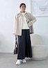 軽く羽織りやすいジャージメルトンのアウターは、秋冬の羽織におすすめ。 ホワイト×グレーのカラーの組み合わせは、大人カジュアルなスタイリングにぴったり。 足元はNIKEのスニーカーでお出かけに身軽に動きやすいスタイリングにしました。