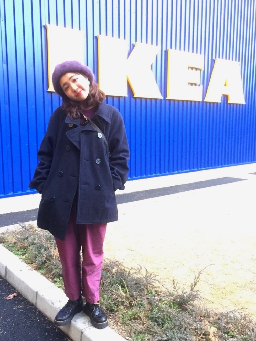 #IKEA #パープル #紫 #pコート #ベレー帽 顔、デカっ!!!