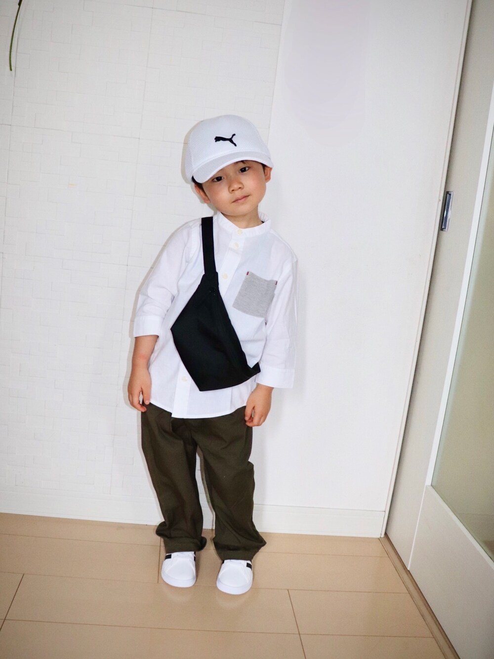 梅雨前の薄いシャツコーデ お姉ちゃん、まだ行かないの? 息子(身長105㎝)
