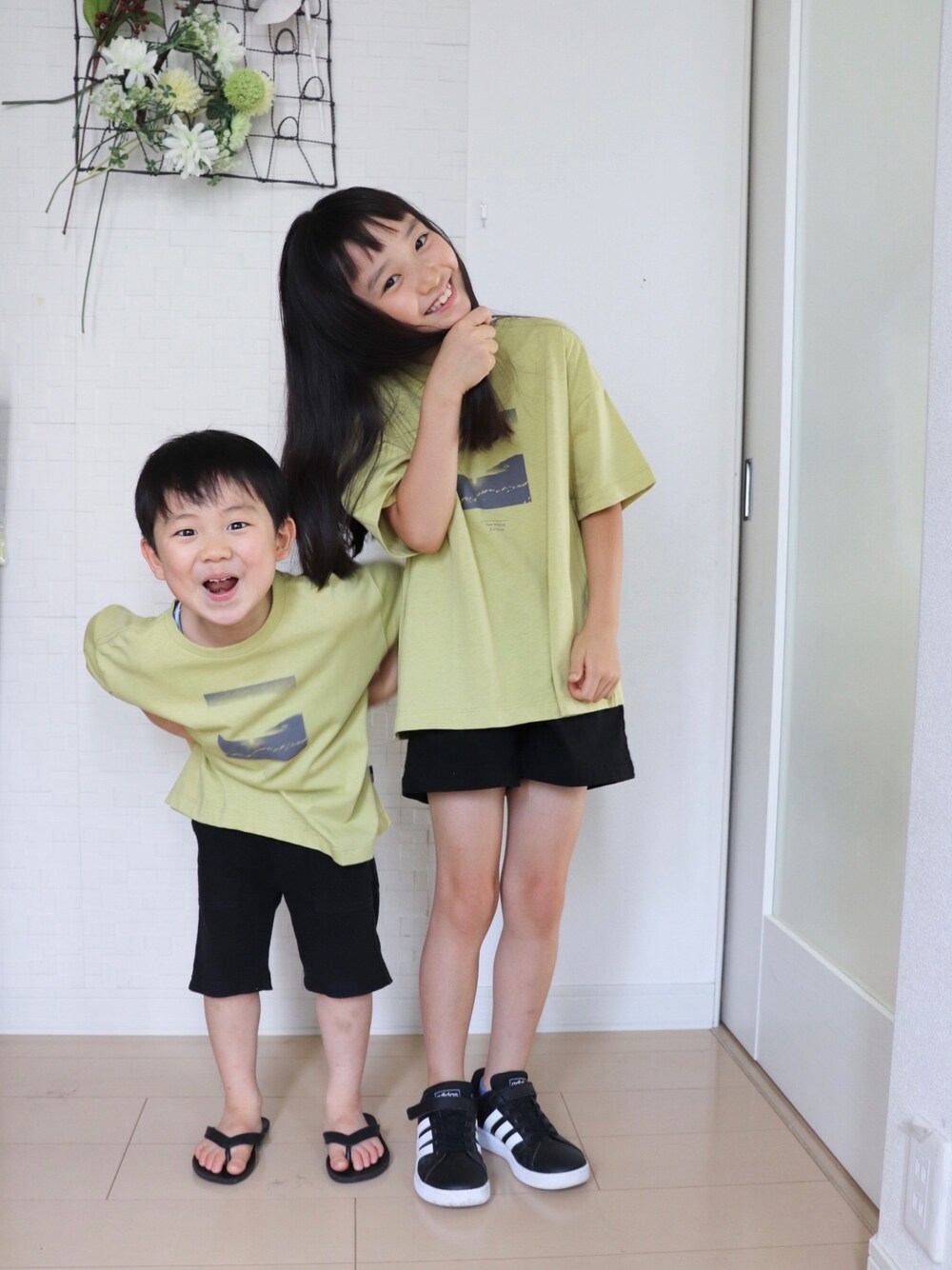 写真撮るよ〜 で顔芸好きだよねぇ。 娘 128センチ 息子 106センチ