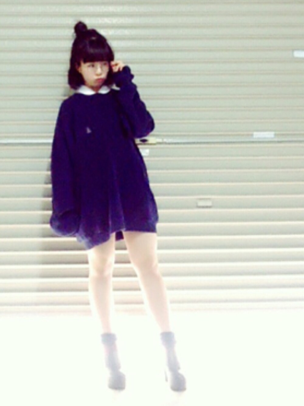 この前に一目惚れで買ったデカ古着をワンピース風に着てコーディネート✨ 中のブラウスは中学の時の制服を活用😳笑 髪はウエーブきして最近マイブームのhnnでメガネと合わせて青文字系に👮🏻💍🛰🐳🐬🌏☄