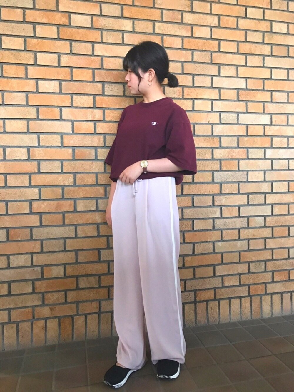 お久しぶりです🐿 凄くWEARさぼっていて久々に更新しました😿 いつもはinsta中心で動いてるのでぜひ繋がってくれると嬉しいです🌟 . 最近買ったばかりのピンクのパンツは横にラインが入っていてusedのchampion Tシャツと合わせてスポーティなカジュアルっぽく通学コーデにしてみました🤴🏼❤️👸🏼