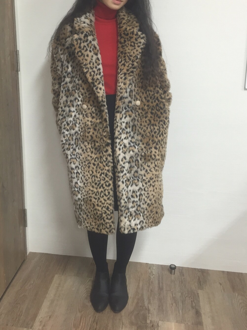 撮影で赤いニットをきたらもっていたレオパードのコートと合わせたらなんとも言えない感じになった…。