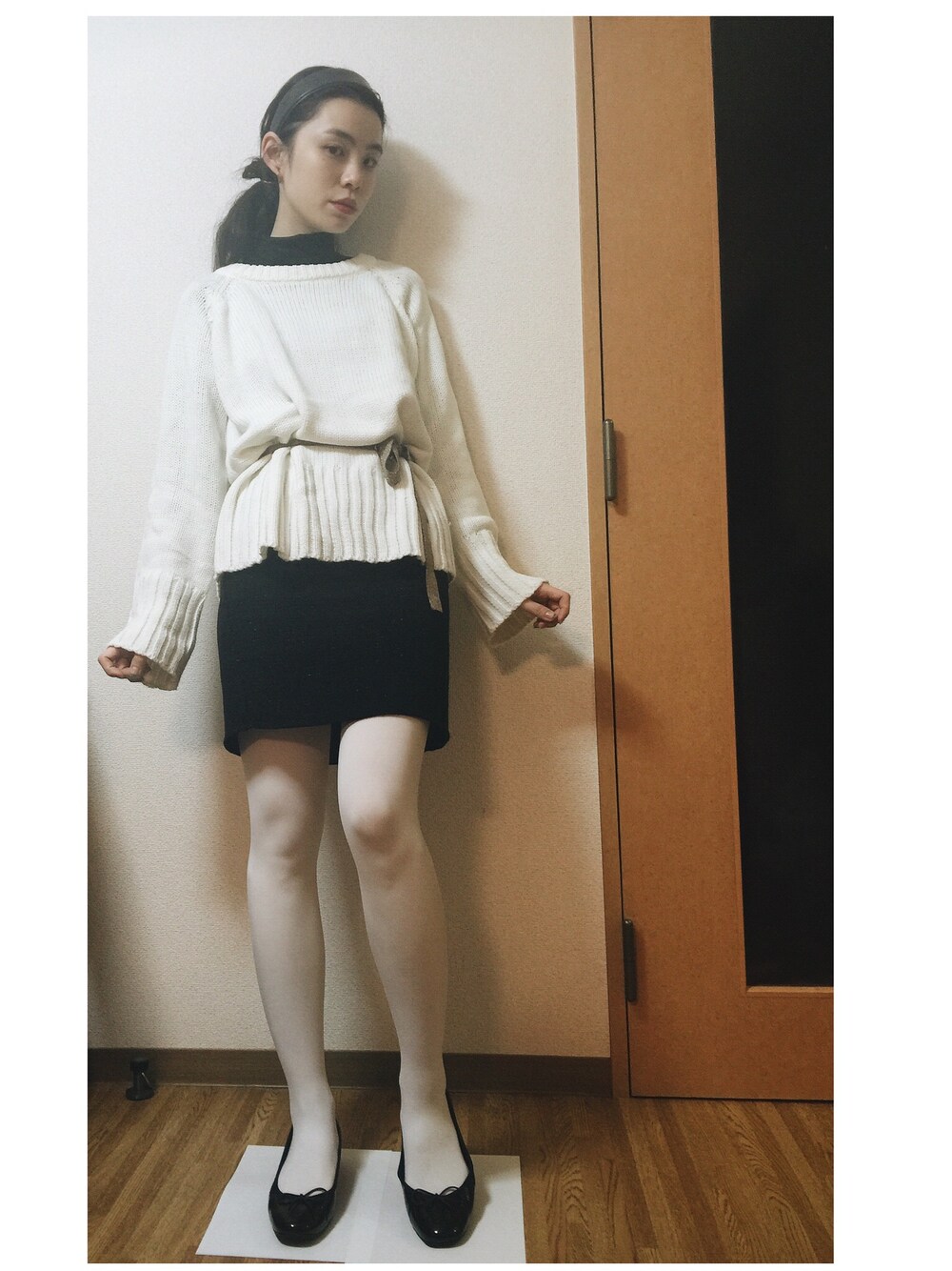 ビックシルエットのニットをリボンでキュってするのがすき!
