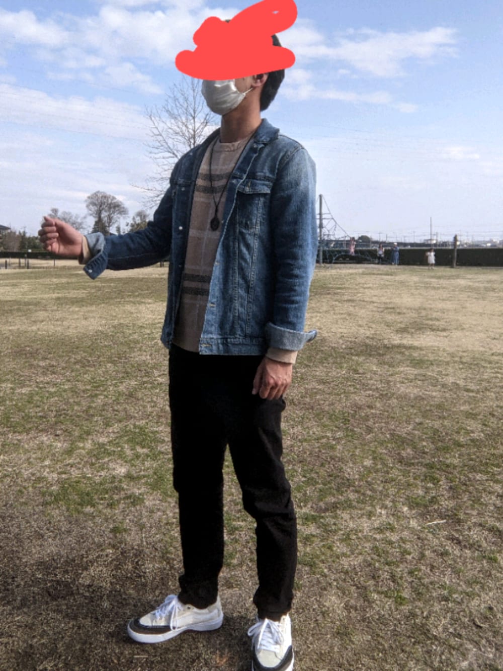 collectiveのベージュのセーターの明るい色味を引き立たせるコーデ。デニムジャケットに合うトップスたくさん用意していてよかったと思います。