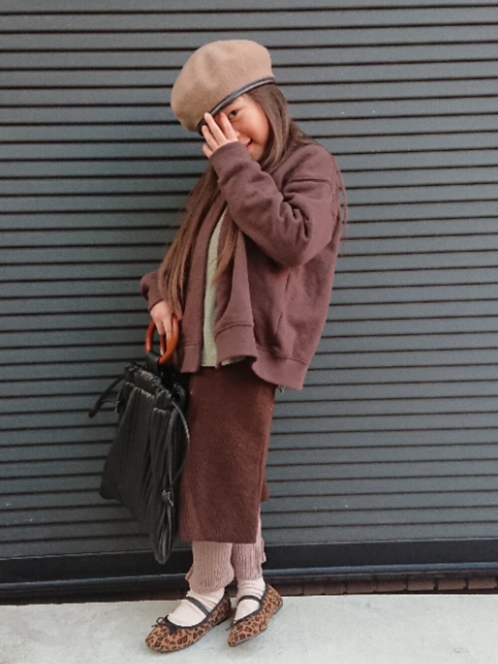 『ナッツの女王 』✴️👸✴️ ピスタチオコーデ🥜 切れ目からグリーンのナッツ💚 チョコ🍫にトッピングで🤗 今回は本当にブラウンに染まりました☕ 冬アウター着回しチャレンジのセンバツに選んで頂き、ありがとうございます🥰 ❤️➕📂follow嬉しいです👧💕 身長117cm 体重22kg