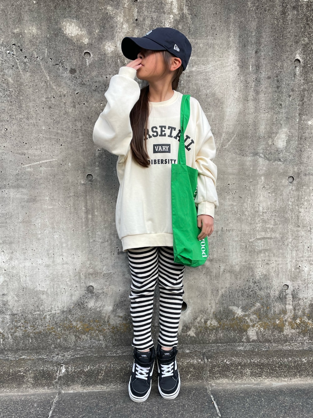 春服デビュー宣言🌸 ロゴスウェットにボーダーレギンス♡ 大好きな通学コーデに小物加えただけ🧢🛍 モノトーンにトートバッグでパステルカラーにすると春っぽ🍀 ケンさんのホワイトフェスにも参加します🤍 前回コーデは動画UPしてます✨ 編集の仕方がまだわからず...😂 いつもありがとうございます∩^ω^∩ ♡+フォルダinコメントフォロー嬉しいです🎶 身長134cm 体重30kg