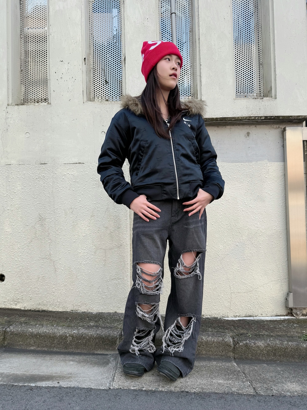 Rey のデニムパンツ「オリジナルパッチダメージワイドデニム」を使ったコーディネート