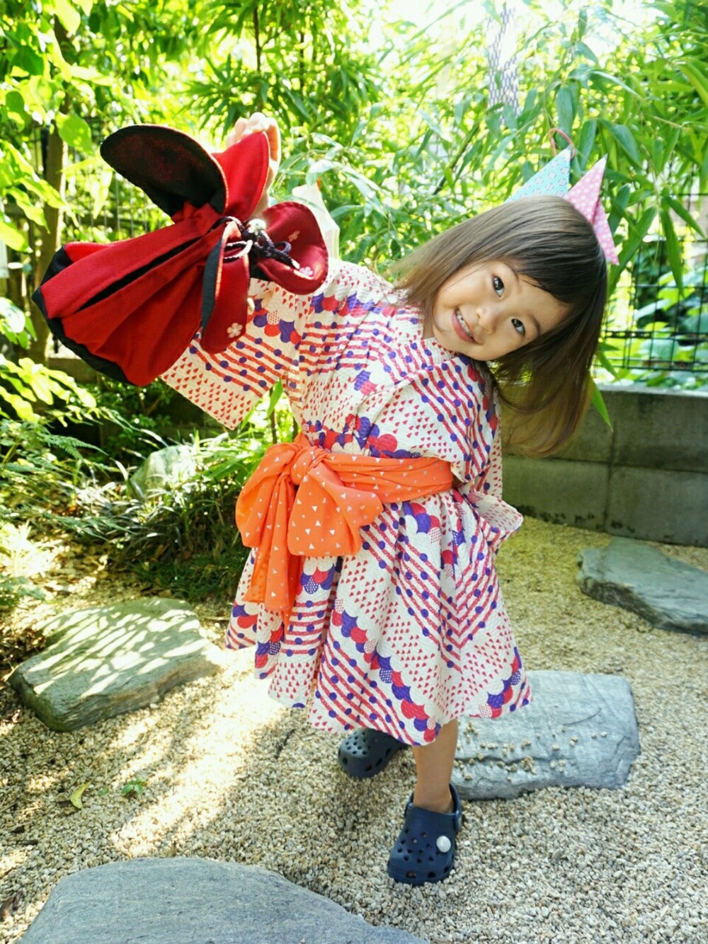 Rey の浴衣「浴衣ワンピース:Patchwork&Rain / S(85-95cm)-L(125-135cm)」を使ったコーディネート