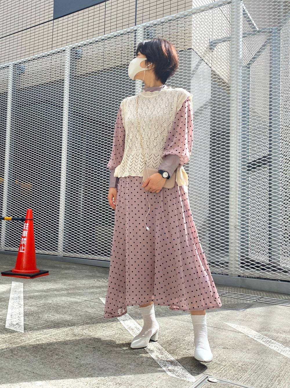 おかきょんのワンピース「ぺチコート付きドットハイネックワンピース」を使ったコーディネート