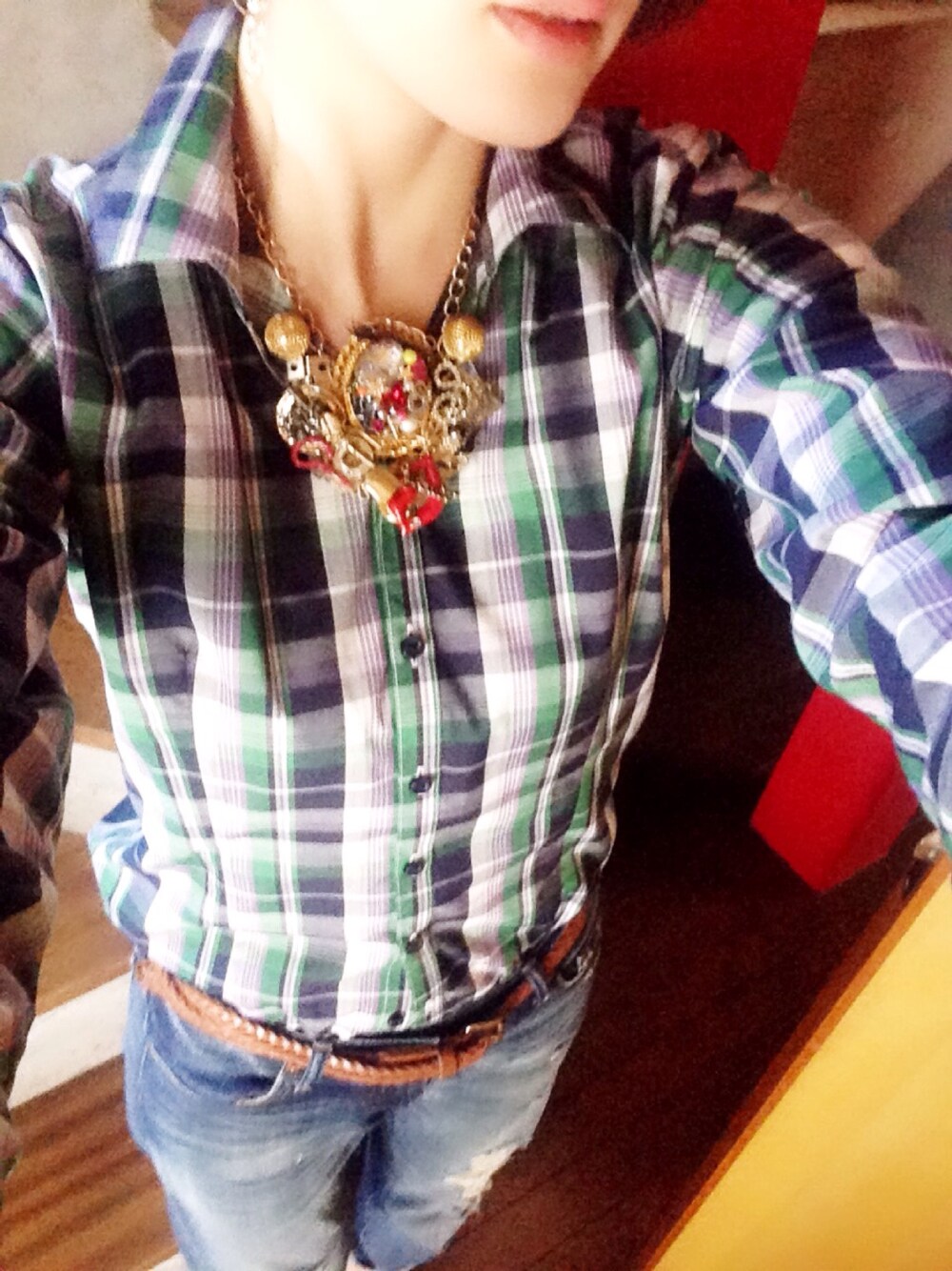 大きめネックレスとカフスボタンを取り入れた春コーディネート♪ ネックレスとカフスボタンはRoseCoconです♡ 人前にでるお仕事なのですが、しゃべらなくてもお客様に「そのネックレスすてきですね!」とか「カフスボタン可愛いですね!」っていわれます♪ お話するきっかけにもなって、ファッションに取り入れて正解!