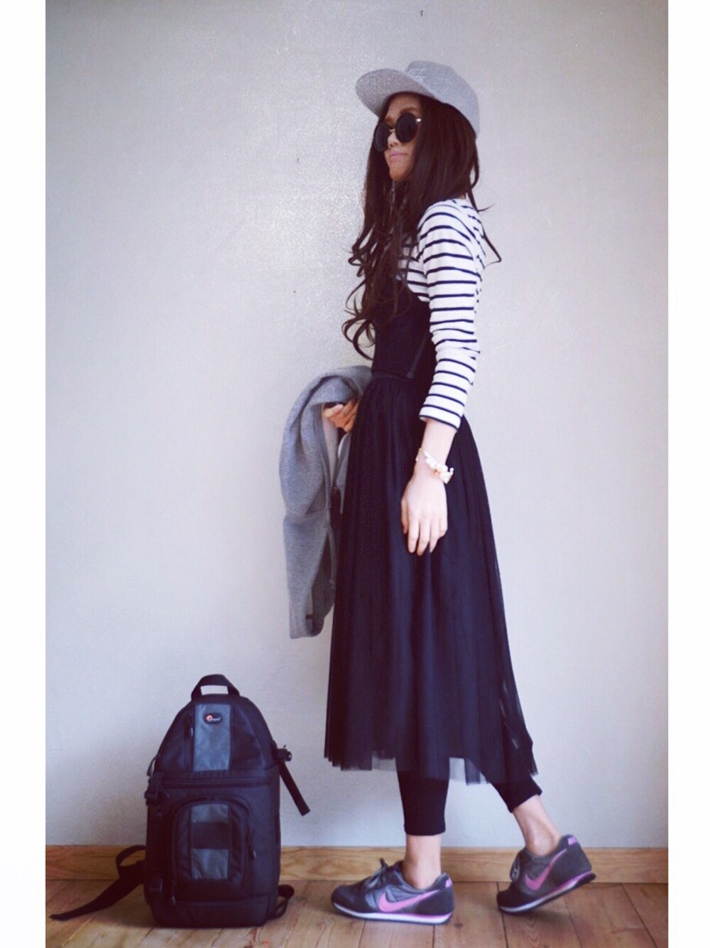 春に近づくと、乙女なコーデをしたくなりますが落ち着きません😗チュールスカートをビスチェと合わせてみました😙パーカー羽織ってお出かけ😚