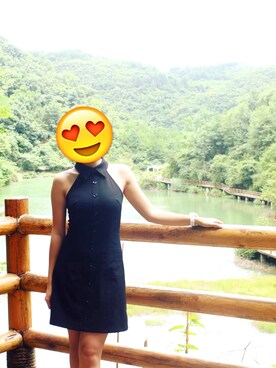 「无のアイテム(Pinafore dress、ブラック系)」を使った、谢小鸡Topさん(レディース・159cm)の夏コーディネート