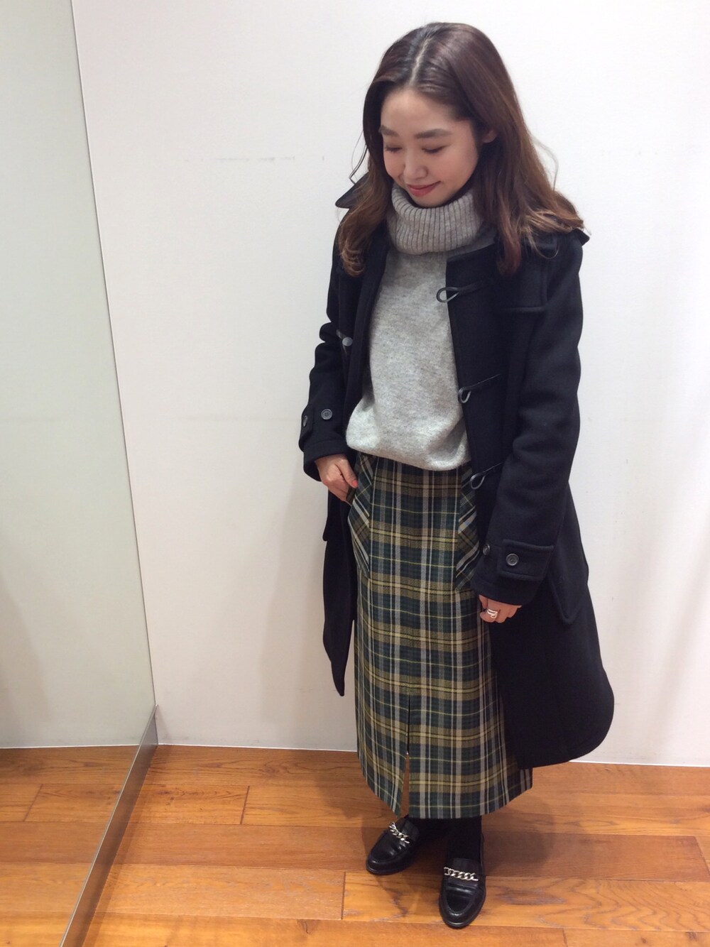 ダッフルコートにタイトスカートを合わせて 女性らしいスタイリングに ROSSO別注のGloverallのダッフルコートは、 ブラックのみ本革のトグルコード×ホーンを使用しており より高級感のあるデザインになっています◎