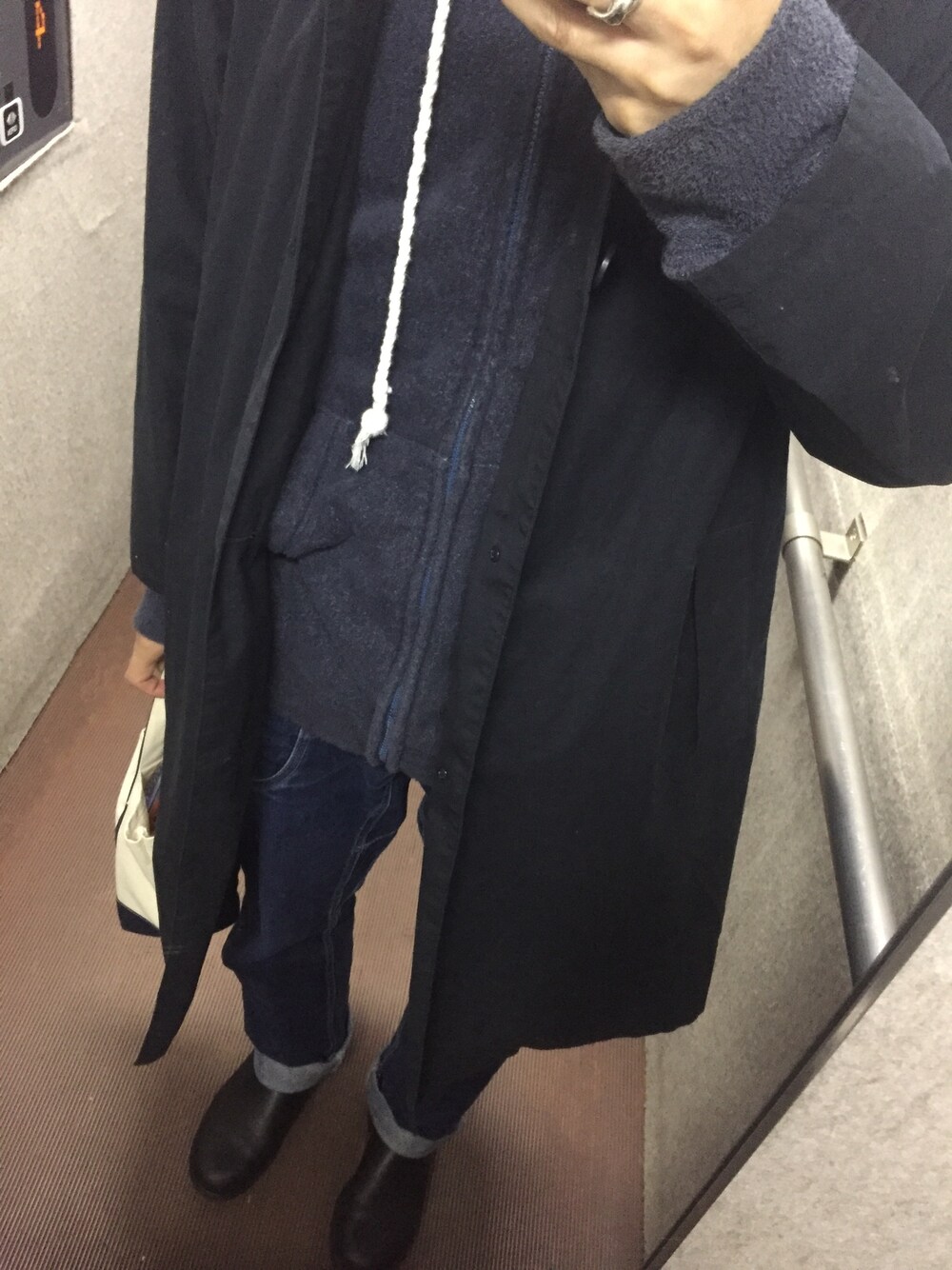 嫁に借りた薄手のモッズコート。