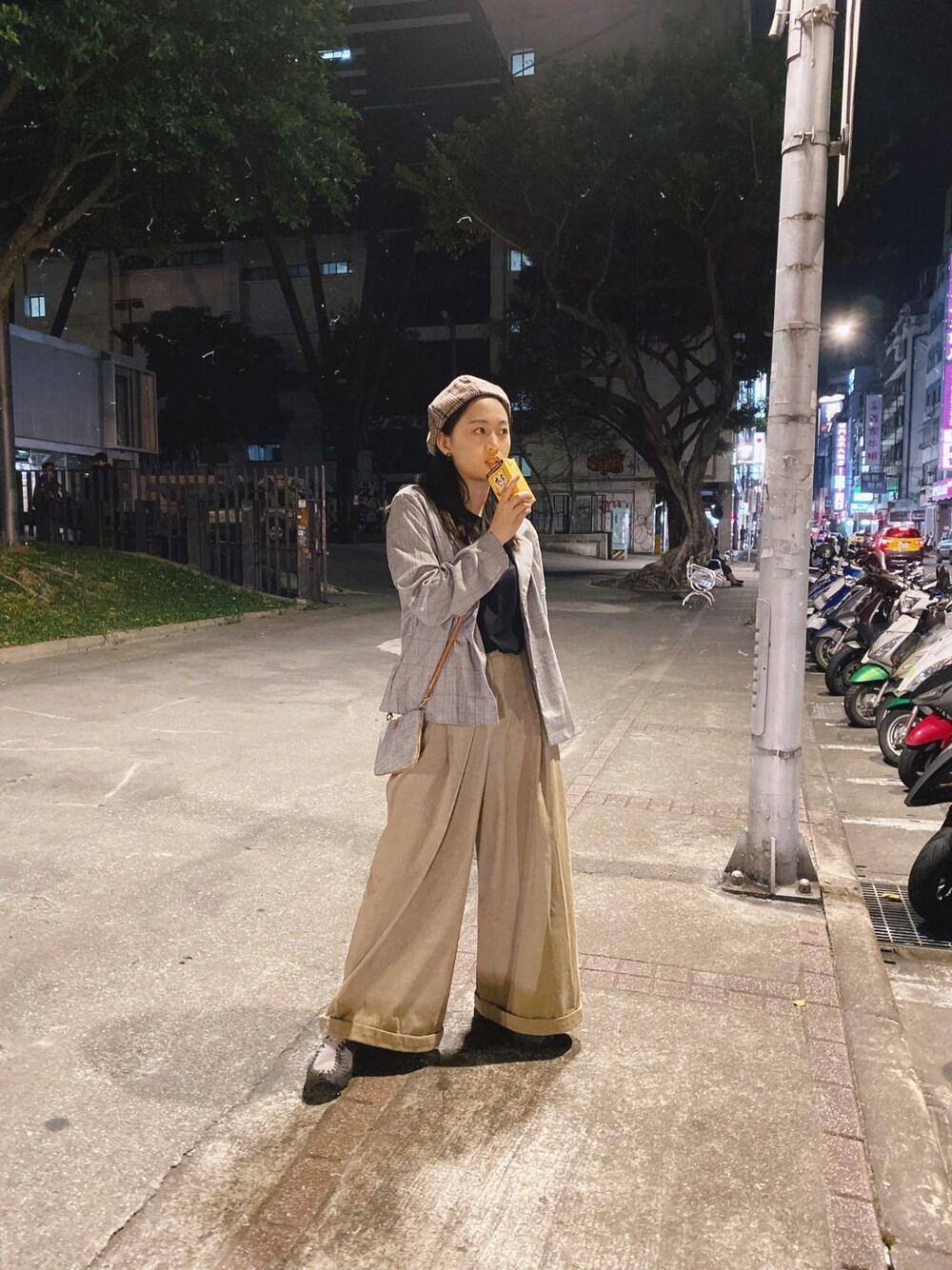 シルバー系のバッグを着用したレディースの秋コーディネートの1枚目の写真