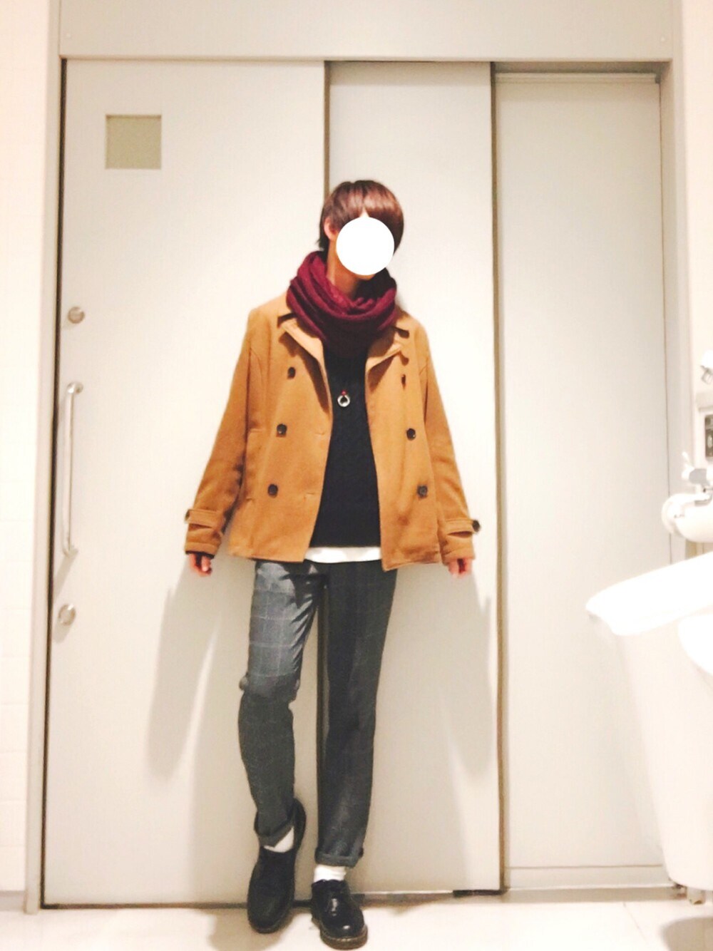 キャメルのPコート×黒セーター✨ 高校生の頃めっちゃ使ってたアウター😂