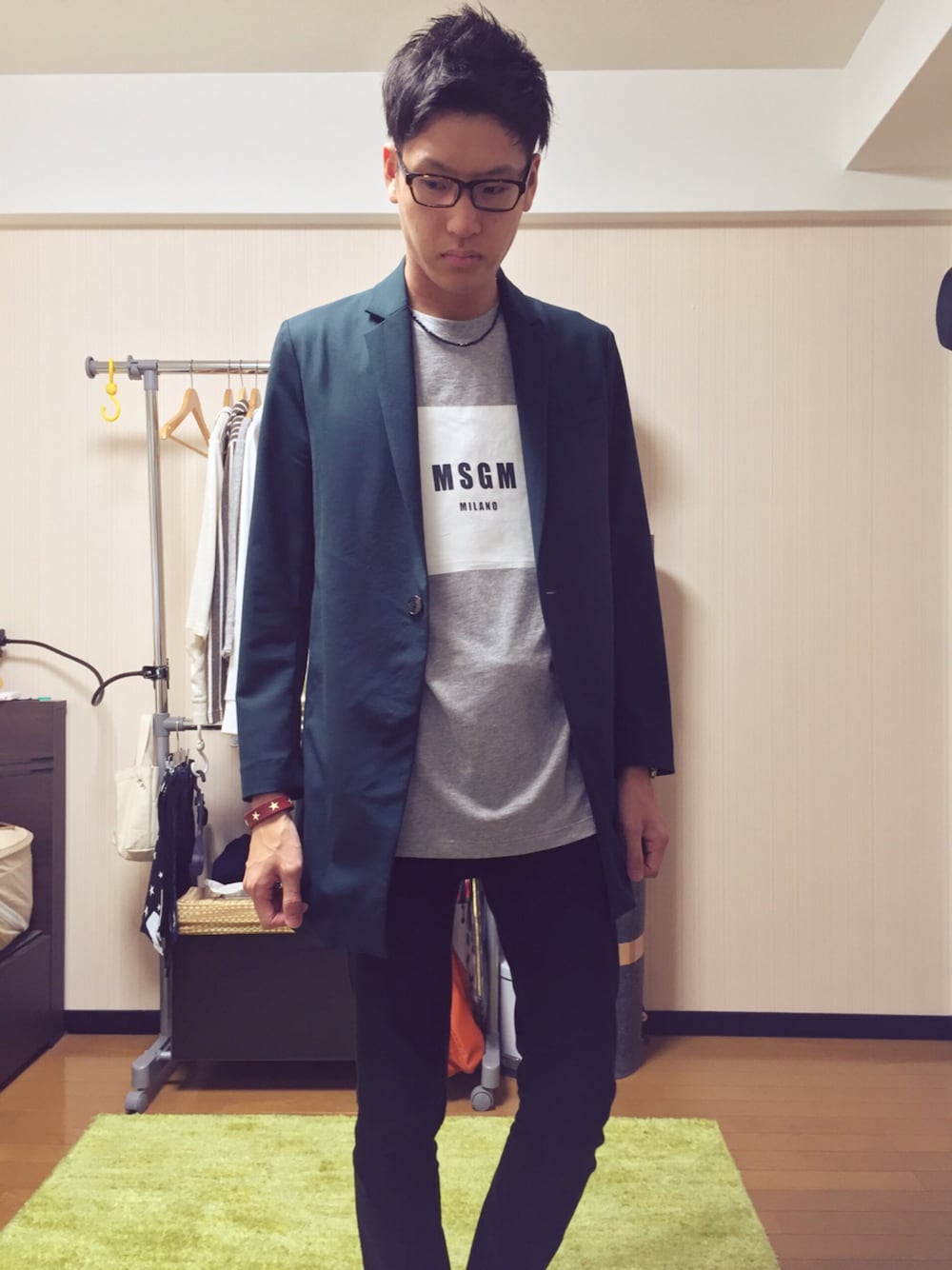 前から気になってたMSGM手に入れた(^.^) それを主軸にしたコーデ。 このグリーンのミドルコート使いやすい!
