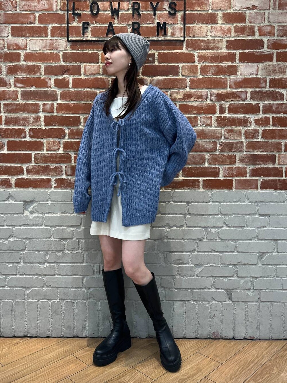 ゆるっとかわいいカラーニットコーデ‼️ 冬はアウターが黒になりがちなので、インナーはカラーニットがおすすめです⛄️ ブルーを差し色で持ってくるととっても可愛いです! ロングブーツは厚底でスッキリしたシルエットなのでスタイルアップで見せてくれます!