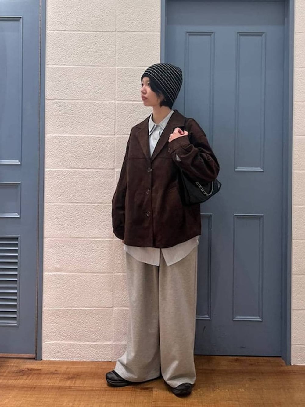 トレンドのスウェードジャケット 春にちょうどいい気温調節ができるアウター シルエットはゆったりしていて、メンズライクっぽく着て頂けます✨ 春も秋も使えます🍂