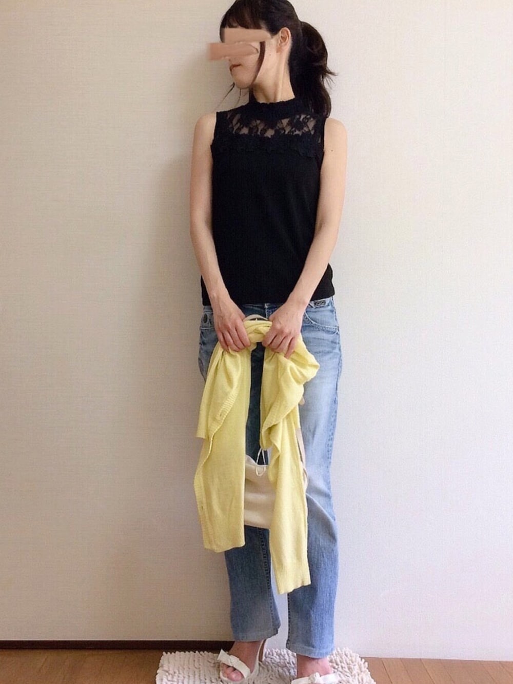 ▪️outer:Re:EDIT お家で洗えるレーヨンナイロンハイゲージロングニットカーディガン イエロー / Mサイズ ▪️tops:INGNI ヨークシアーリブ/ハイネックノースリ ブラック系その他 / Mサイズ ▪️shoes:KOBE LETTUCE ヒールサンダルシューズ スエードアンクルリボン ホワイト / Mサイズ +* ゚ ゜゚ *+:。.。.。:+* ゚ ゜゚ *+:。.。.。:+*゚ ゜゚ *+ ♡ 、+ 、フォロー、コメント ありがとうございます╰(*´︶`*)╯ tomoさん、rhさん、N子さん、 choconosukeさん、にゃんさん フォルダインありがとうございました😆 +* ゚ ゜゚ *+:。.。.。:+* ゚ ゜゚ *+:。.。.。:+*゚ ゜゚ *+ ゆるめのデニムにレーストップスの リラックススタイル✨ 梅雨明け目前なので 紫外線対策・冷房対策のため カーディガンは必須アイテムです バックに引っ掛けて持つだけでも ちょっと色が入って コーデが明るくなります🤗