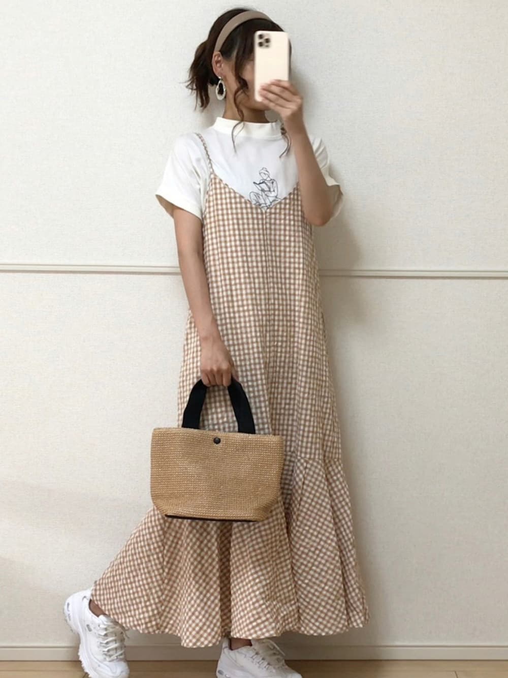 uniのワンピース「「ウォッシャブルキャミワンピース」」を使ったコーディネート
