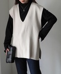 uniのベスト「深Vネックニットベスト」を使ったコーディネート