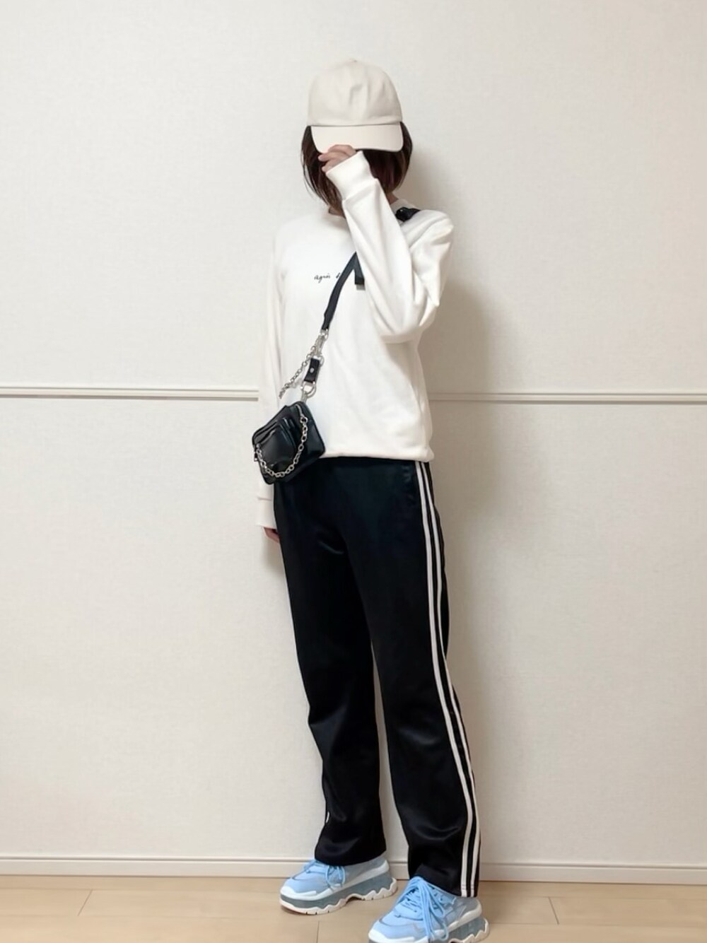 ♡ 、+ 、フォロー ありがとうございます╰(*´︶`*)╯ 韓国ストリート✨ スウェットにトラックパンツ を合わせた ストリートファッションに パステルブルーが可愛い スニーカーを差し色に✨ モノトーンコーデに パステルブルーが映えて スニーカーは差し色なのか スニーカーメインのコーデ なのか分からなくなる😂 クリアソールとダブルの 靴紐が珍しいデザインで 色味的にも大きさ的にも 存在感たっぷりなので 全体のバランスも◎ +* ゚ ゜゚ *+:。.。.。:+* ゚ ゜゚ *+:。.。.。:+*゚ ゜゚ *+ ▪️tops:agnes b. S179 SWEAT ロゴスウェット アイボリー / Sサイズ アニエスベーのロゴが さりげないオシャレを 演出してくれる コンパクトサイズの スウェット✨ 短め丈で1枚で着ても🙆♀️ ジャンスカのインナーに してもダボつかず🙆♀️ ▪️shoes:300kcal エアークリアソールスニーカー ブルー / 36サイズ(23.0cm) クリアソールとダブルの 靴紐が珍しいデザインの ダッドスニーカー✨ パステルブルーの色味も 可愛らしい💕 スニーカーをメインとした コーデやモノトーンコーデ の差し色に一役買って くれます◎ ▪️bag:deux amour ウオレットミニBAG ブラック ミニサイズなのに存在感 バツグン!! ウォレットチェーンの ようなファスナーが コーデのアクセントに ピッタリのボディバ✨ スマホとミニ財布が入る だけのマチはあるので 実用性もバッチリ◎ サイドのミニポーチは 車のスマートキー入れに 使ってます (個体差がありますので お手持ちのキーのサイズ をご確認ください) ▪️cap:ジーユー キャップ / ベージュ バックリボンが可愛い💕 ガーリーコーデとも 相性良き🙆♀️ +* ゚ ゜゚ *+:。.。.。:+* ゚ ゜゚ *+:。.。.。:+*゚ ゜゚ *+ Instagram▷uni.roygbvp 17LIVE▷uni🐶うに🥺💕