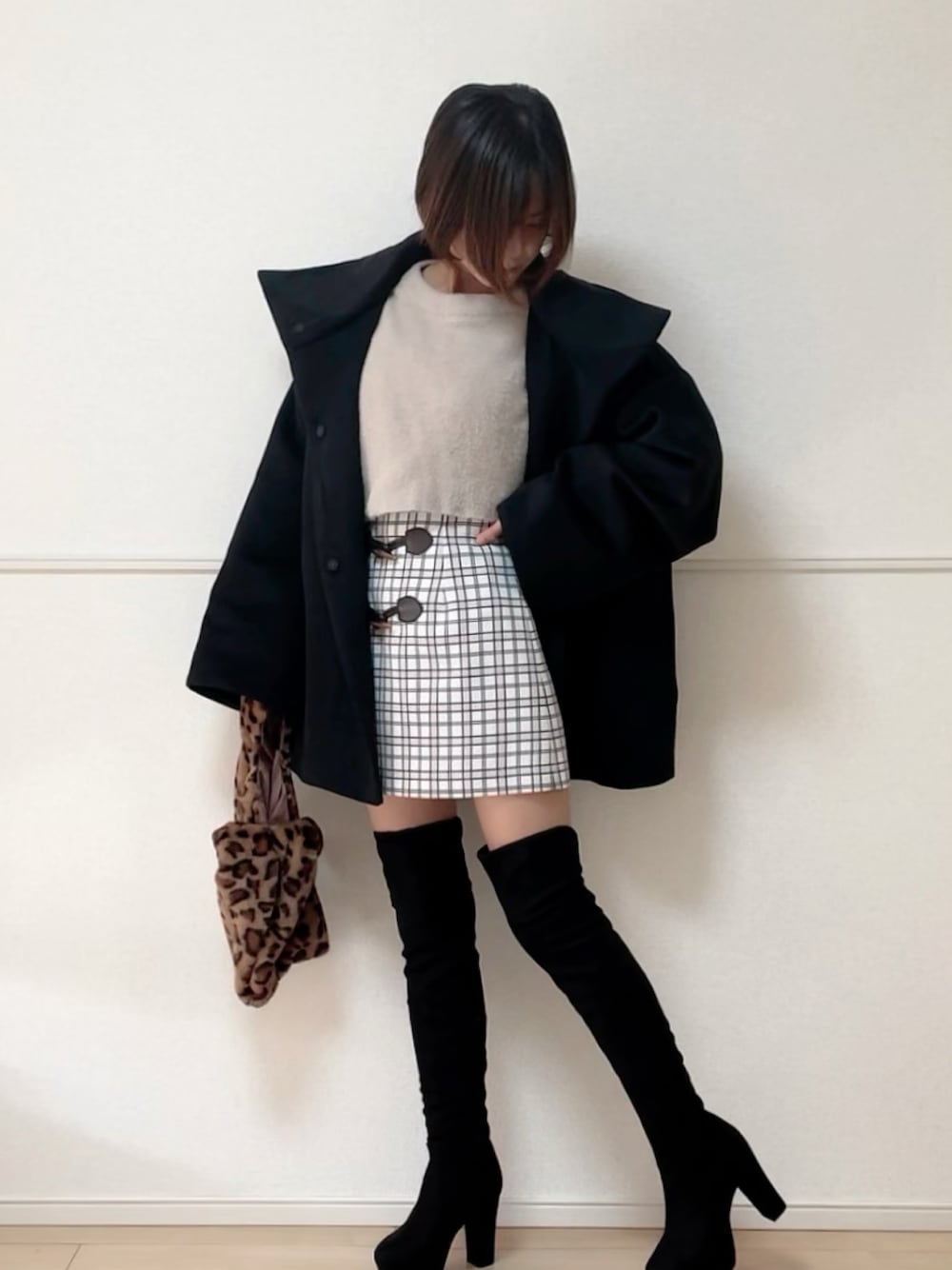 ♡ 、+ 、フォロー ありがとうございます╰(*´︶`*)╯ 最強美脚コーデ🥺💕 商品タイトルに最強美脚! と名前が付くだけあって ほんとに美脚に見える ニーハイブーツがNEWIN💕 履き口がゴムになっていて 適度な締め付け感があり 足を細くしてくれます ニーハイとして履いても ゴム部分で折り返して ロングブーツとしても◎ オーバーサイズコートと ミニボトム・ロングブーツ で美脚・脚長効果が活きる 美シルエットに✨ +* ゚ ゜゚ *+:。.。.。:+* ゚ ゜゚ *+:。.。.。:+*゚ ゜゚ *+ ▪️outer:UNFIELD 【2022A/W New Arrival】ハイネックショートコート ブラック / Fサイズ ボタンを1番上まで留めて ハイネックコートに ボタンを開けて折り返せば ビッグカラーコートに 早変わり!着回し力抜群の 万能コート✨ カジュアルからキレイめ まで幅広く着回せるので 1枚持っておくと便利◎ 厚みのある起毛生地は ハイネックで着用すると 冬でも暖かく着られます◎ ⏩ZOZOTOWNにて SALE価格で11,880円 ▪️tops:COCO DEAL 総針フェザーショートニット ピンクベージュ / 2サイズ フェザーヤーン使用の ふわふわショートニット✨ しっかりした厚手の生地で ぽわん袖が女性らしく◎ 今年らしいショート丈は ハイウエストトップスと 合わせてもワンピと レイヤードさせても◎ ▪️skirt:dazzlin ダッフルチェックミニスカート オフホワイト / Sサイズ 秋冬らしいダッフル チェックスカート✨ フェルトのような柔らかめの 生地で着心地良き🙆♀️ ハイウエストで スタイル良く見えます🙆♀️ ▪️shoes:Newlyme 最強美脚!10.5cmヒール裏起毛ニーハイブーツ ブラック / 23cm 最強美脚!の名の通り履く だけで誰でも美脚コーデ が作れるニーハイブーツ✨ 履き口がゴムになっていて 適度な締め付け感があり 確実に細見えします◎ 安定性のある太めヒールで 10.5cmの高さを気にさせない 歩きやすさも魅力✨ 裏起毛で冬でもあったか◎ 小さめの作りになっている ので普段より2サイズ程度 大きめをオススメします ▪️bag:DAISO エコファートートバッグ アニマル柄:豹(商品番号:4550480174716) 店頭で見かけたら即買いの ファートートバッグ💕 色や柄によってはすでに 売り切れているものも? 300円なのにちゃんと 裏地付きなのも嬉しい💕 ▪️bag:DAISO エコファートートバッグ グレー(商品番号:4550480174723) 店頭で見かけたら即買いの ファートートバッグ💕 色や柄によってはすでに 売り切れているものも? 300円なのにちゃんと 裏地付きなのも嬉しい💕 +* ゚ ゜゚ *+:。.。.。:+* ゚ ゜゚ *+:。.。.。:+*゚ ゜゚ *+ Instagram▷uni.roygbvp 17LIVE▷uni🐶うに🥺💕