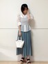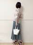 ♡ 、+ 、フォロー ありがとうございます╰(*´︶`*)╯ 久々に一目惚れしたシャツ ボリューム袖でガーリー 要素を残したフェミニンな デザインがお気に入り💕 短め丈のビスチェ付きで ハイウエストパンツと 合わせてスタイルアップ◎ ほんのりグレーがかった 色味でビスチェを重ねると 落ち着いた印象になります +* ゚ ゜゚ *+:。.。.。:+* ゚ ゜゚ *+:。.。.。:+*゚ ゜゚ *+ ▪️tops:SNIDEL Sustainableニットビスチェオーガンジーブラウス ホワイト / Fサイズ シアーブラウスとビスチェ のセットアイテム✨ ビスチェはブラウスの上 から重ねてもインナーと しても使えます◎ ふんわりボリューム袖が ガーリーで二の腕カバー しながら華奢見せも◎ ▪️bottoms:ABITOKYO フレアプリーツワイドガウチョパンツ ブルー / Mサイズ 一見プリーツスカート見え するガウチョパンツ✨ パンツなので安心して着る ことが出来ます🙆♀️ 落ち着いたくすみブルーが 大人可愛い💕 ▪️shoes:Mafmof Mafmof(マフモフ) ゴールドチェーン付きダブルベルト厚底 サンダル ブラック系その他 / Mサイズ ブラックラメが目をひく一足✨ コルクの厚底と靴周りの ゴールドチェーンも可愛い💕 ダブルベルトと太ヒールで 歩きやすさと可愛さを両立🙆♀️ ジャストサイズがお勧めです ▪️bag:Riberry 2WAYフェイクレザーバケツバッグ ホワイト 留めるボタンの位置で バッグの形が変わる 2wayバケツバッグ✨ 白地にブラックラインが 高級感あります🙆♀️ きれいめコーデはもちろん カジュアルコーデにも なじみやすくヘビロテ 間違い無しのアイテム✨ ハンドバッグにも ショルダーバッグにも🙆♀️ +* ゚ ゜゚ *+:。.。.。:+* ゚ ゜゚ *+:。.。.。:+*゚ ゜゚ *+ Instagram▷uni.roygbvp 17LIVE▷uni🐶うに🥺💕