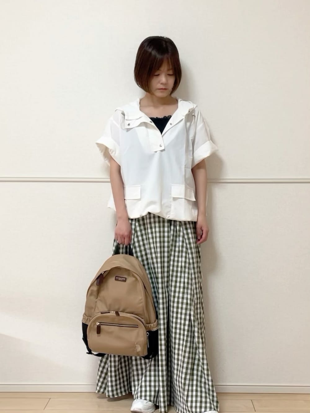 ♡ 、+ 、フォロー ありがとうございます╰(*´︶`*)╯ ナイロンパーカーを使って 大人カジュアルに✨ シャカシャカしたナイロン 生地は程よいカジュアル感 でスカートとも相性◎ 裾のドロストは絞って 丸っこいシルエットに 短め丈になってスタイル アップもします◎ Social GIRLさん 本日クーポンデーです💕 +* ゚ ゜゚ *+:。.。.。:+* ゚ ゜゚ *+:。.。.。:+*゚ ゜゚ *+ ▪️tops:Social GIRL フードナイロンプルオーバー オフホワイト / Mサイズ ナイロン生地が今っぽく 程よいカジュアル感が 魅力的なパーカー✨ スタンドネックデザインで そのまま着ても襟元ボタンを 開けても◎ 裾のドロストを調節すると 丸みを帯びたシルエットが 立体的で可愛く短め丈で スタイルアップも◎ ⏩ZOZOTOWNにて SALE価格で5,379円 ⏩さらに500円クーポンで 4,879円に💕 ▪️skirt:サキシマamp ギンガムチェックボリュームマキシスカート カーキ / Fサイズ ZOZOTOWN人気アイテム ランキング1位獲得✨ (2021年7月3日時点) 今季マストバイの ギンガムチェックが マキシスカートで登場✨ 新色のカーキも要チェック✨ ボリューミーなシルエットが ガーリーコーデに ピッタリの1枚✨ ⏩ZOZOTOWNにて SALE価格で3,990円 ⏩さらに1000円クーポンで 2,990円に💕 ▪️shoes:skechers 厚底ラメダッドスニーカー ホワイト / 23.5cm ボリュームソールと グリッターラメが目を引く ダッドスニーカー✨ 流行のダッドシューズスタイルで 旬な着こなしに✨ ワンサイズ大きめにして コーデのバランスを取ると🙆♀️ ⏩ZOZOTOWNにて SALE価格で9,240円 ▪️bag:U.S. POLO ASSN. 【U.S. POLO ASSN.】 ユーエスポロアッスン ナイロンリュック US2574 ベージュ 収納が多く使い勝手抜群✨ ファスナーも大きく開くので 荷物の出し入れが簡単🙆♀️ 軽量で丈夫なナイロン素材で デイリーユースにピッタリ✨ +* ゚ ゜゚ *+:。.。.。:+* ゚ ゜゚ *+:。.。.。:+*゚ ゜゚ *+ Instagram▷uni.roygbvp 17LIVE▷uni🐶うに🥺💕