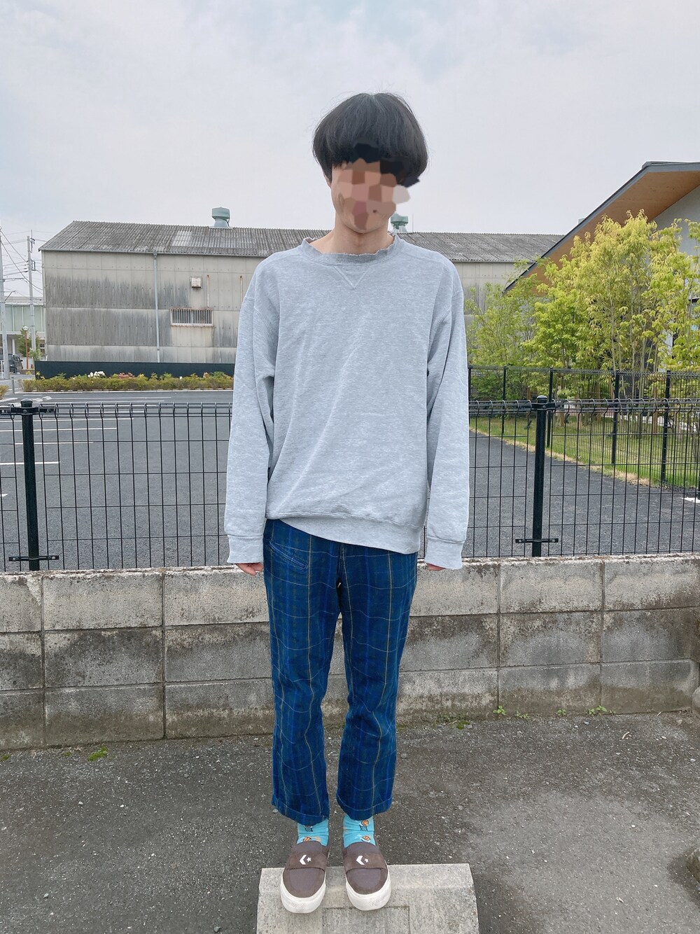 おとんが寝巻きにしてたllbeanのスウェット拝借して勝手に着てる😏笑 これがなかなかお気に入り🌟 チェックのパンツにスリッポンで学生ぽくなってしまった👨🎓