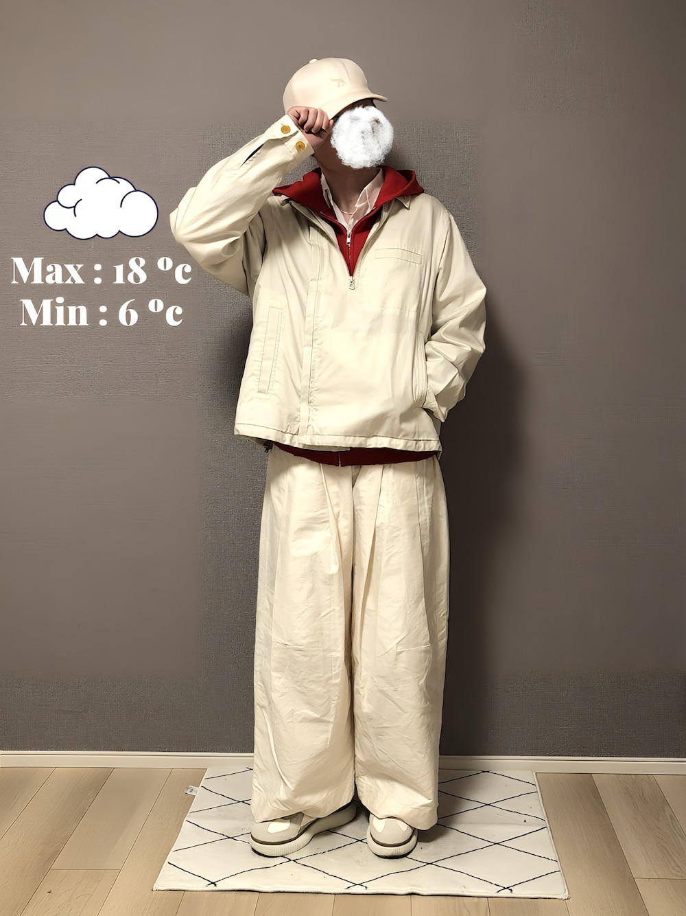 〜コーデ日記37日目〜 ご覧いただきありがとうございます! 赤色のパーカーを差したホワイトコーデ⚪️ 桜色のキャップで春気分♪
